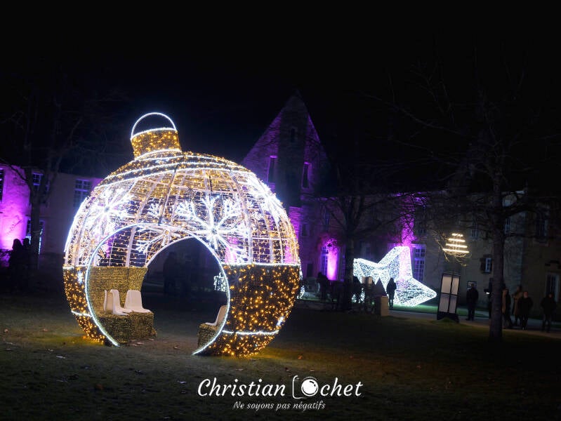 Dés sont arrivée, le promeneur est plongé dans la lumière surplombé par une multitude de lumières scintillantes avant d'être guidé vers le cloitre ou l'attendent flocon de neiges, boules resplendissantes et le grand sapin haut de 6 mètres. juste le temps de s’émerveiller devant les découpages en papier exposés à l’abri et le voyage reprend, longeant les douves et leurs jets d'eau musicaux et cheminant à l'arrière de l'abbaye ou les scénographes ont planté un décors faisant penser au flux et reflux des vagues. Retour enfin vers l'avant du monument avec des jeux illuminés pour les enfants ainsi que les figures traditionnelles de Noël sans oublier un arrêt au "chapitre" pour se réchauffer devant un chocolat ou un vin chaud.